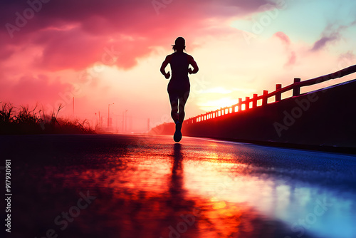 Athlete running road silhouette