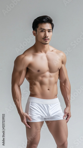 Athletic Asian Male Model Showcasing Elegance