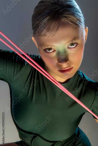 athletic girl holds rackets for bambinton