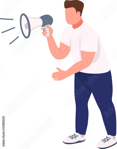 Athletic man shouting in megaphone semi flat color raster character. Posing figure. Full body person on white. Simple cartoon style illustration for web graphic design and animation