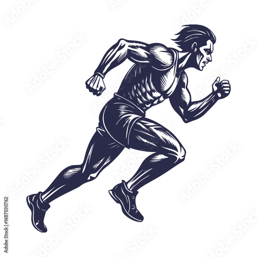 Athletic Runner Silhouette Illustration – Sport Fitness Man Sprinting Vector
