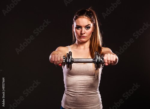 athletic woman working with heavy dumbbells