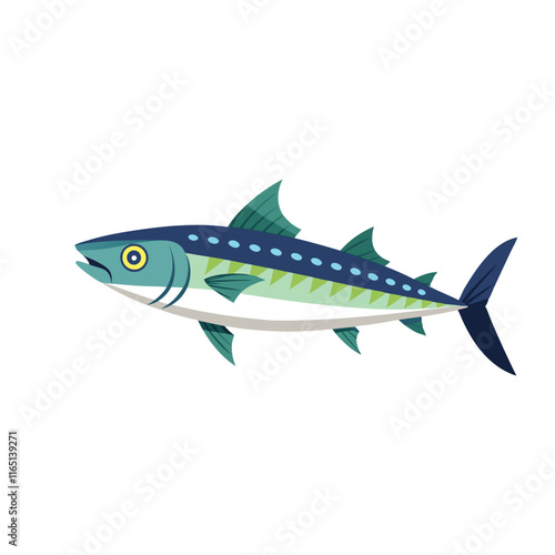 Atlantic Mackerel under water isolated flat vector illustration on white background.
