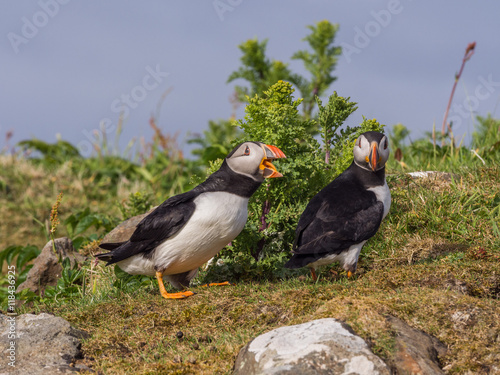 Atlantic puffins on the isle of Lunga, Inner Hebrides, Scotland, UK