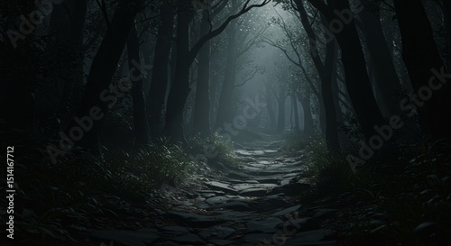 Atmospheric Dark Forest Path Scene Nature Landscape Image