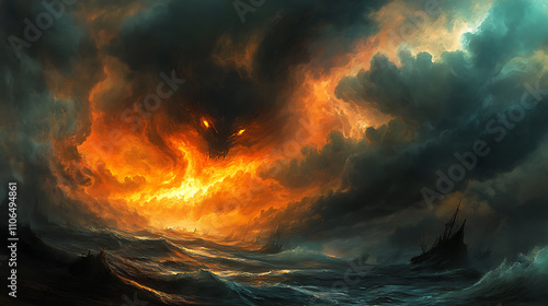 Atmospheric horror scene with ominous clouds over a turbulent sea Evoking a sense of mystery and foreboding