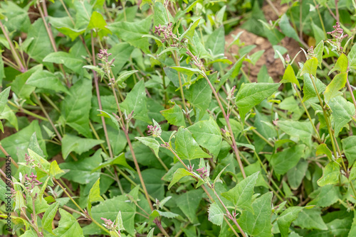Atriplex prostrata, called the spear-leaved orache, hastate orache, thin-leaf orache, triangle orache, and fat hen. Coyote Point Beach, San Mateo, California. San Francisco Peninsula / Bay