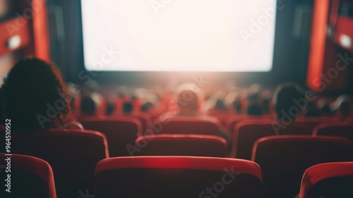 Attendees are seated in a dimly lit theater, their attention glued to the bright, captivating screen at the front, enjoying a shared cinematic moment.