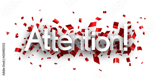 Attention sign over cut out red foil confetti backgaround.