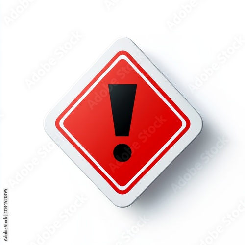 Attention Warning Sign Icon with Bold Exclamation Point on Red Diamond Background for Safety and Caution in Various Applications and Designs