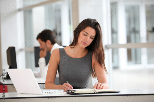 Attractive businesswoman working on laptop computer