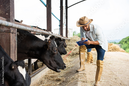 Attractive Caucasian male dairy farmer work in livestock farm industry