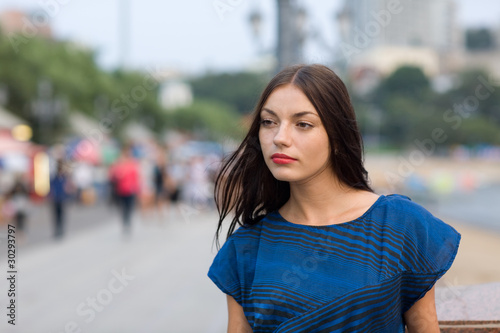 Attractive girl on the waterfront in Vladivostok. Russia.