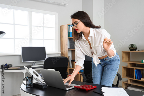 Attractive secretary working with laptop in office