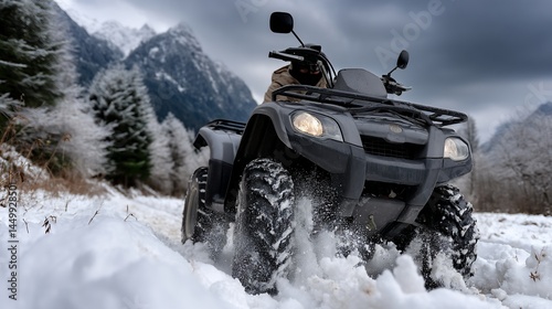ATV in snowy mountain landscape
