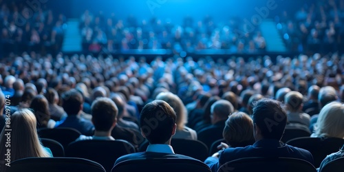 Audience in conference hall watching speaker on stage - Business concept. Concept Business Conference, Audience Engagement, Public Speaking, Professional Development, Corporate Event