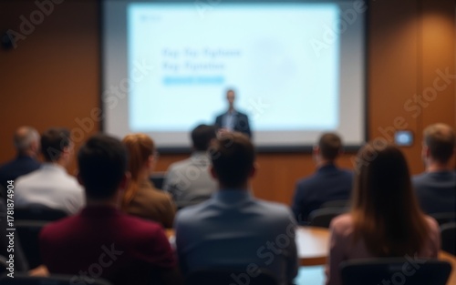 Audience Watching a Presentation. Defocused Blurred Presenter During Conference Meeting. High quality
