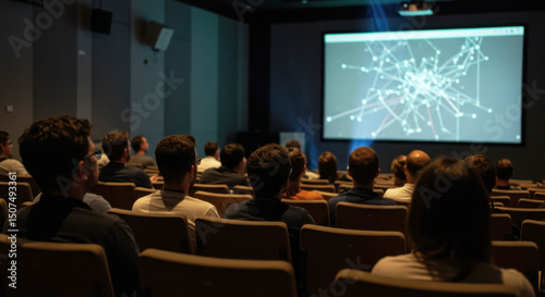 Audience watching presentation on digital screen in conference room