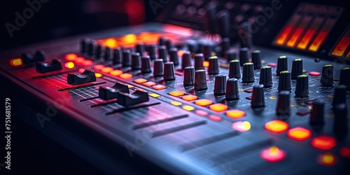 Audio mixing console in a recording session. shallow depth of field.