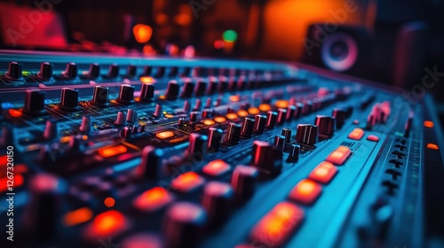 Audio specialist working in a control room, optimizing music tracks with digital tools