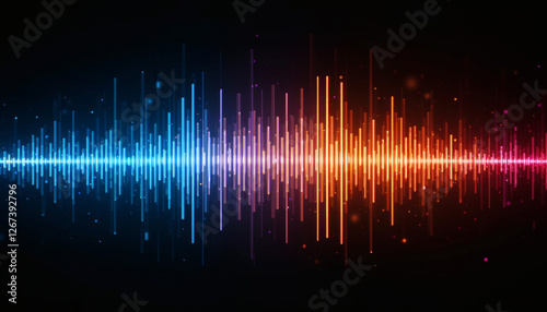 Audio waveform glitch effect with neon frequency bars flickering and distorting dynamically