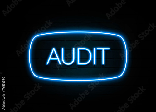 Audit - colorful Neon Sign on brickwall