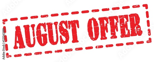 AUGUST OFFER text written on red stamp sign.