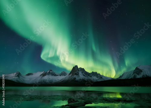 Aurora Borealis Multicolored green vibrant , Aurora PolarisNight starry sky and Northern lights. Green aurora borealis Lights in the night sky over Norway