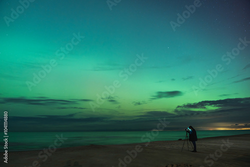 aurora borealis, northern lights above baltic sea in poland, stegna, october 2024