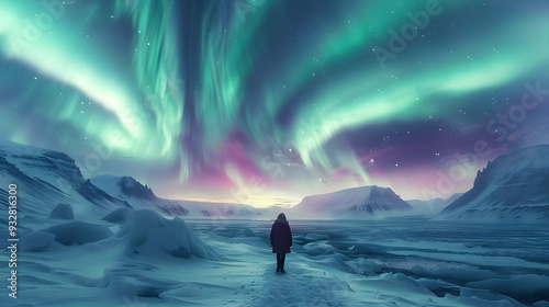Aurora Borealis Over Snowy Mountains - Landscape Photography