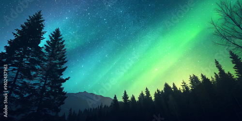 Aurora Borealis Over the Forest: Witness the mesmerizing dance of the Northern Lights above a silhouetted forest, a captivating display of nature's ethereal beauty.