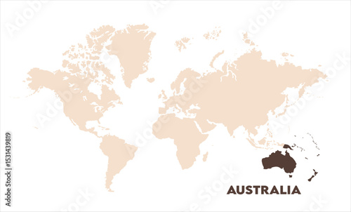 Australia highlighted on world map-11, Map of Australia, highlighted on the world map, Australia on the world map, Satellite view, Australia location on the globe.