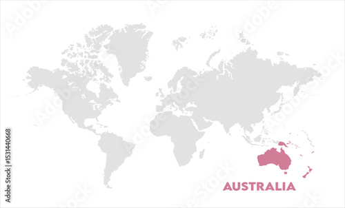 Australia in world map-14, Map of Australia, highlighted on the world map, Australia on the world map, Satellite view, Australia location on the globe.