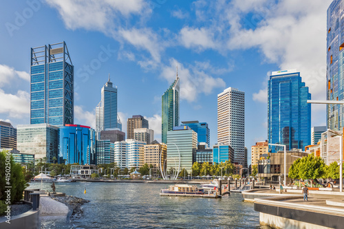 Australia, Oceania, Western Australia, Swan River, Perth, River and skyscrapers