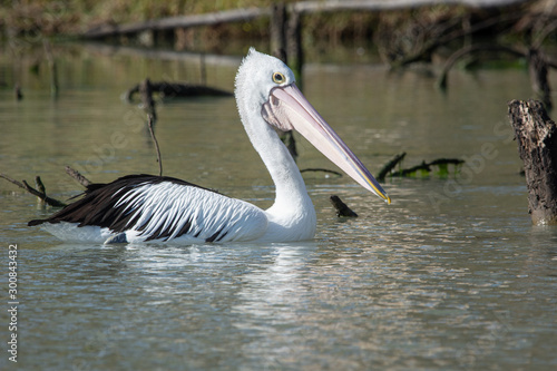 Australian Pelican cruising Wongulla Backwater, River Murray, South Australia.