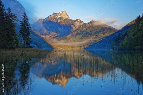 Austria, Styria, Eisenerz, Hochschwab, Pfaffenstein mountain, Leopoldsteiner lake in the morning