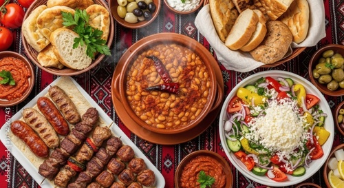 Authentic Balkan Dinner Table featuring Traditional Rustic Dishes