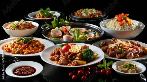 Authentic Chinese Food on Black Background
