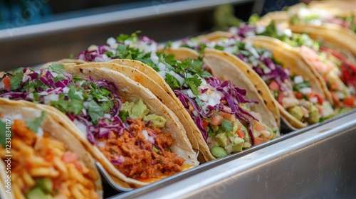 Authentic Mexican tacos filled with fresh ingredients served at vibrant outdoor festival food truck event