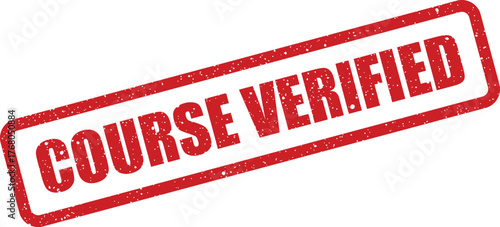 Authentic red rubber stamp with the text COURSE VERIFIED representing official approval or confirmation of educational content