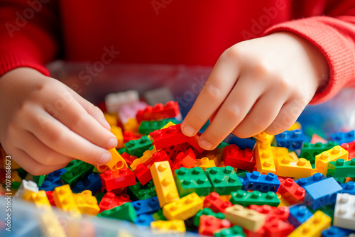 Autistic child playing with puzzle, stimulating creativity and cognitive ability