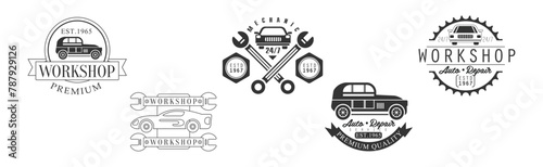 Auto Repair and Mechanic Workshop Label and Emblem Vector Set
