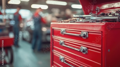 Auto Shop Scene Featuring Red Tool Chest with Tools