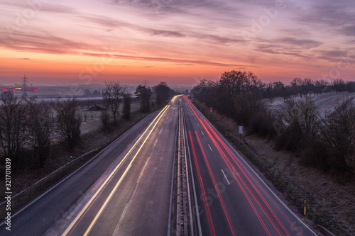 Autobahn bei Mainz im Sonnenaufgang
