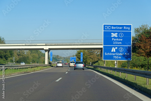 Autobahntafel vor dem Berliner Ring Autobahn A10, Autobahnkreuz Pankow, Ausfahrt Schönerlinder Str.