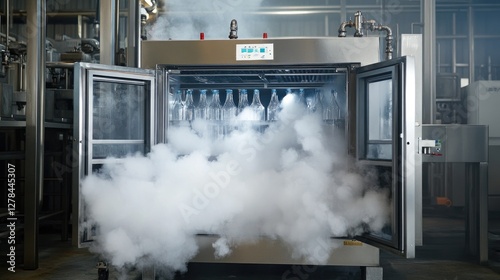 Automated beverage bottle cleaning system with steam disinfection and rapid cooling.