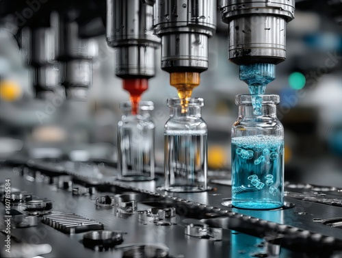 Automated Laboratory Robotics Filling Vials, High-Tech Pharma Manufacturing Innovation