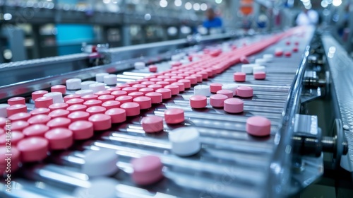 Automatic pill sorting on a conveyor line, cutting-edge pharmaceutical technology, streamlined process