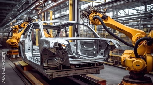 Automation in Action, The Robotics Workshop for Car Frame and Body Production in the Automobile Industry. Generative AI