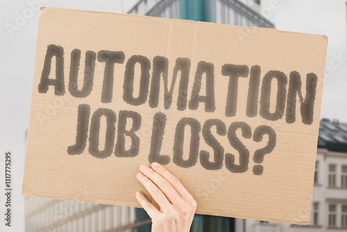 "Automation job loss" on worn cardboard. Highlights the question of job losses due to technology. ROBOTS. MACHINES. EFFICIENCY. PRODUCTIVITY. SKILLS. TRAINING. ADAPTATION